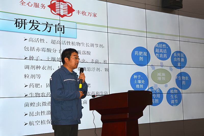 全豐生物研發(fā)中心主任徐雪松,就安陽全豐產(chǎn)品的發(fā)展歷程、產(chǎn)品分類、登記情況及新的研發(fā)方向等內(nèi)容作了介紹。